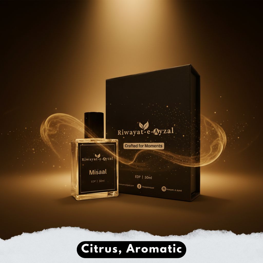 Misaal is a breathtaking blend of amber, floral, and woody notes that captures hearts and lingers in memories. Its elegance is bottled with the richness of jasmine and saffron, a warm, woody amber heart, and a sensual, earthy base. Misaal exudes sophistication and allure in every drop, perfect for unforgettable moments or luxury.